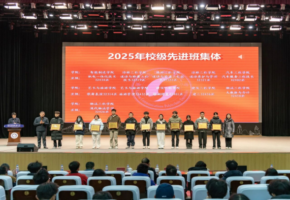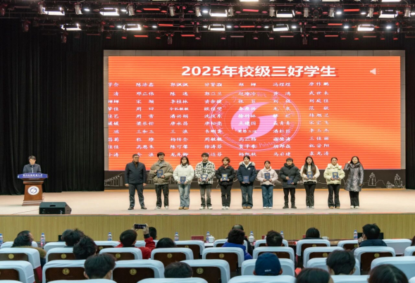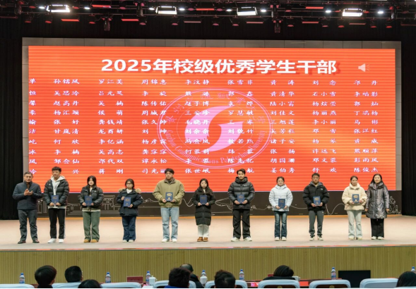 校领导为受表彰学生代表颁发奖牌、荣誉证书